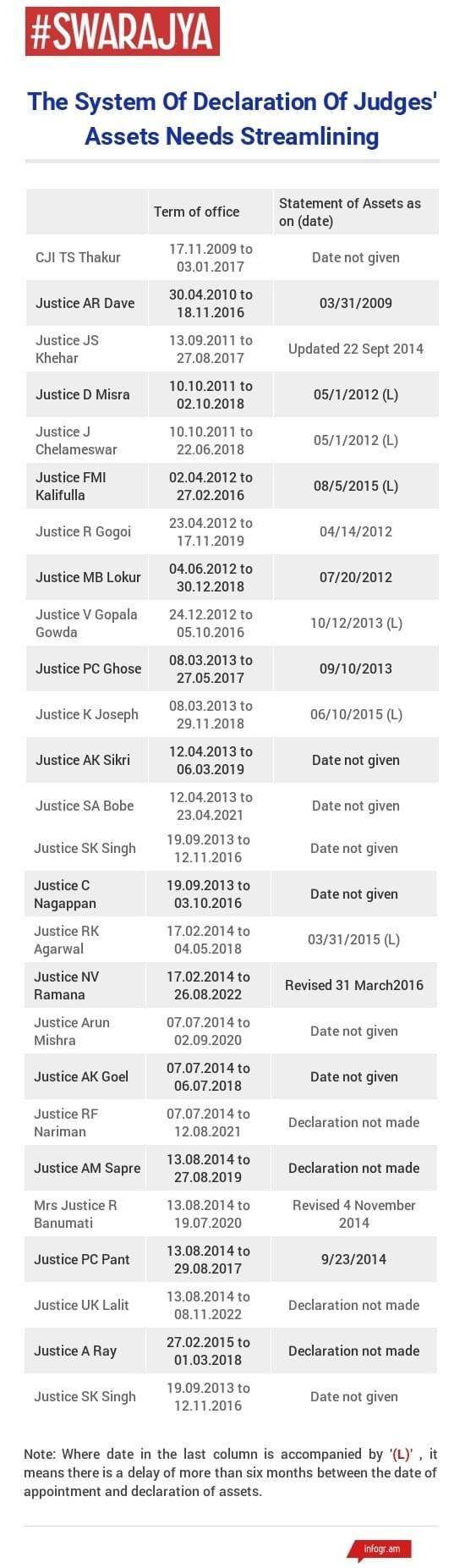 appointment. Some judges declared their assets more than six months after