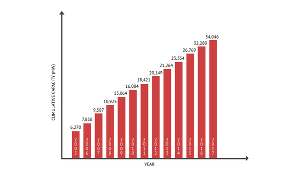 Yet, much action has happened on wind power initiatives. As of June this year, the total installed capacity was 34.293 GW, which puts it at number four in the world, after China, US and Germany.