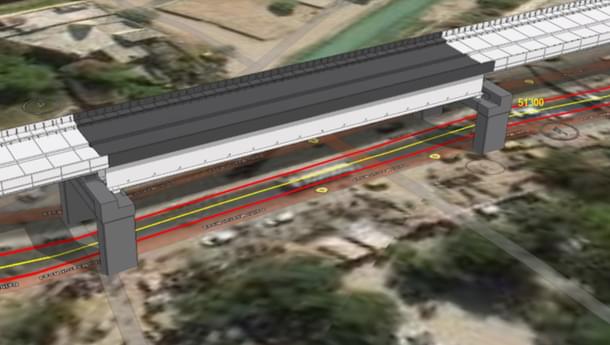 The construction of these portal piers is going on in full swing. On this span, the RRTS train will cross the siphon at a height of about 14 meters from the ground level.
