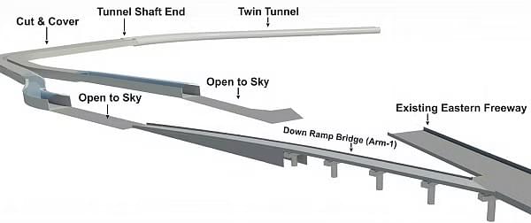 The project also entails building a viaduct for vehicle access at the Eastern Freeway Orange Gate, as well as open cuts and access roads on both sides of the corridor. The left-side tunnel will run beneath the seaway, resurfacing after B D Somani Chowk.