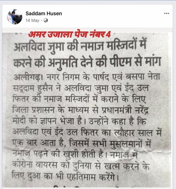 On 10 July, a resident of Aligarh gave a complaint against the post at Harduaganj police station.