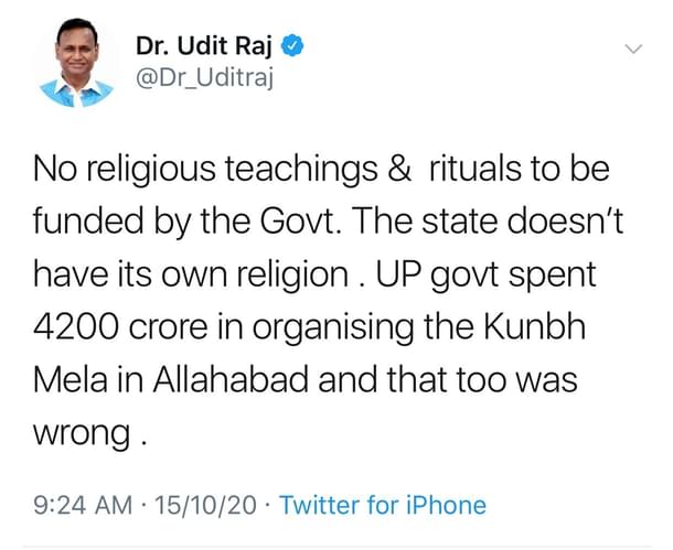 — Dr. Udit Raj (@Dr_Uditraj) October 15, 2020