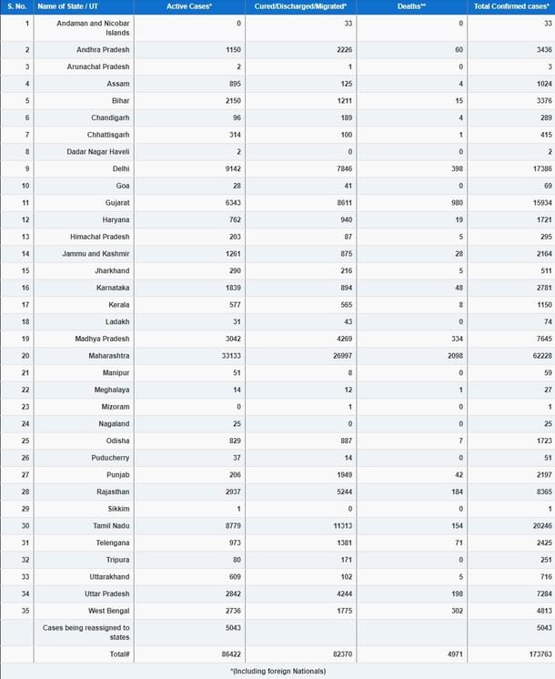Among other states/UTs where corona cases have surged past 2,000-mark are West Bengal (4,813), , Andhra Pradesh (3,436), Bihar (3,376), Karnataka (2,781), Telangana (2,425), Punjab (2,197), and Jammu and Kashmir (2,164).