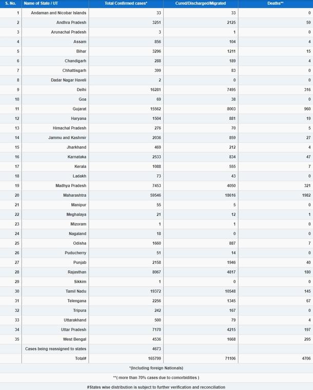 Maharashtra, which has emerged as the worst Coronavirus-hit state in the country, has so far recorded 59,546 cases, including 1,982 fatalities and 18,616 recoveries. Tamil Nadu followed with 19,372 cases. The Covid-19 tally in Delhi has crossed the 16,000-mark with as many as 16,281 cases recorded so far in the national capital. Gujarat has reported 15,562 cases so far.