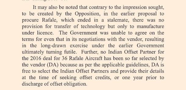 It also refuted the Congress’ claims of prior negotiations having a clause for transfer of technology. The statement says that previous negotiations did not have any provision for transfer of technology but only to manufacture under licence.