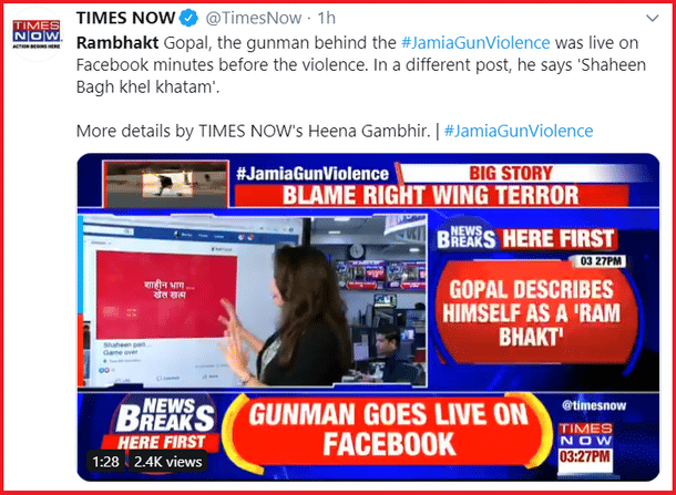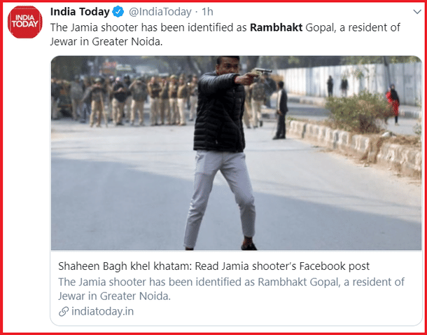 Also as per Firspost and ANI reports, the name of the shooter is actually “Ram Bhagat Gopal Sharma” and he is said to be a resident of Greater Noida’s Jewar.