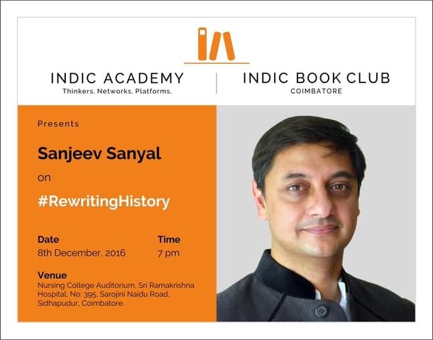 Indic Academy is hosting a talk by Sanjeev Sanyal on ‘Rewriting History’ this Wednesday, 8 December, in Sri Ramakrishna Hospital, Coimbatore.