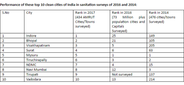 In order to foster a healthy competition between cities for improving cleanliness standards, the Ministry of Urban Development started the Swachh Survekshan survey, ranking of cities on cleanliness and other aspects of urban sanitation in 2016 which ranked 73 cities across the country. On the same lines, the ministry initiated Swachh Survekshan 2017 in which it ranked 500 cities of India.