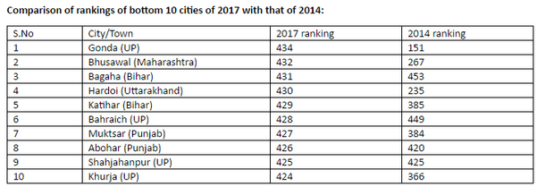 Among other notable things that came out of this survey, the most significant is Varanasi’s improved rank of 32. The city was ranked 418th in 2016. However, four of the dirties cities in the country are from UP. Around 25 towns from UP are ranked among the bottom 50 cities.