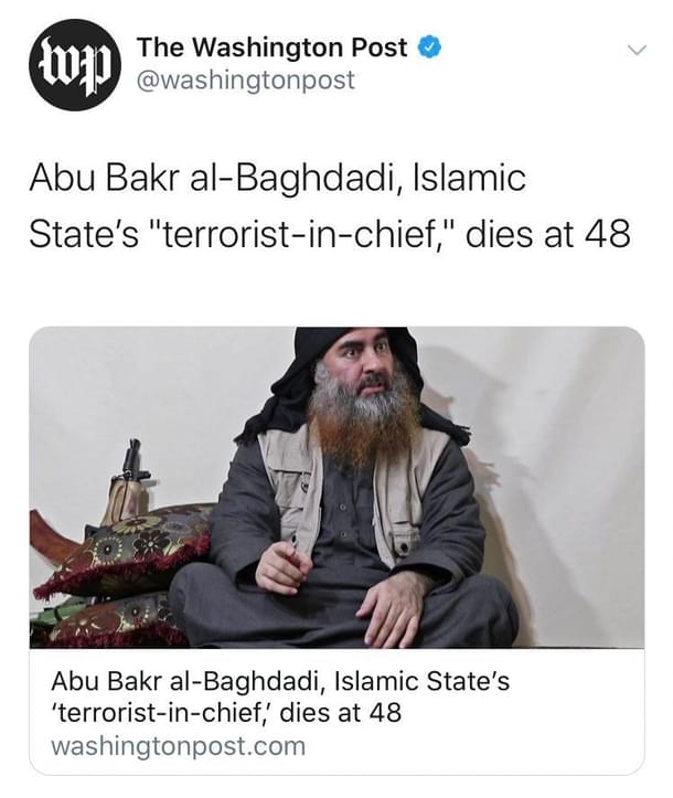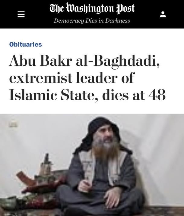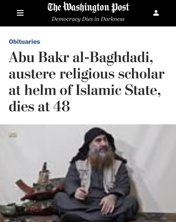 The Washington Post quickly moved to a damage control mode and changed the headline of its obituary of ISIS leader Abu Bakr al-Baghdadi on Sunday