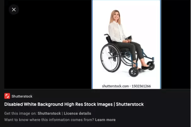 Moreover, even the images of the blind man and the women on the wheelchair can be bought from the Shutterstock website.