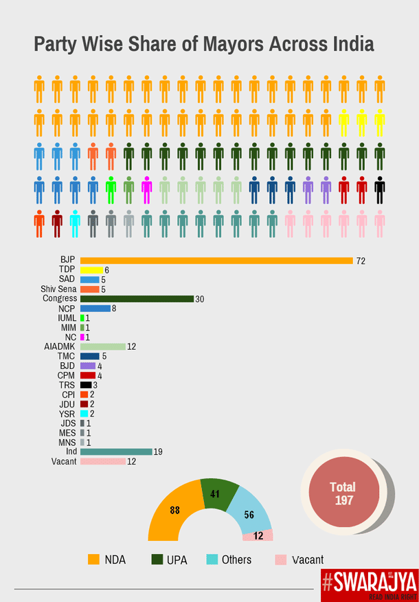 Through the following 5 charts we try to find out the extent of BJP’s hold over Indian cities – at state and municipal levels. A very interesting picture emerges.