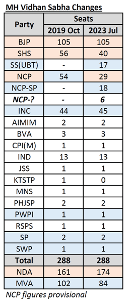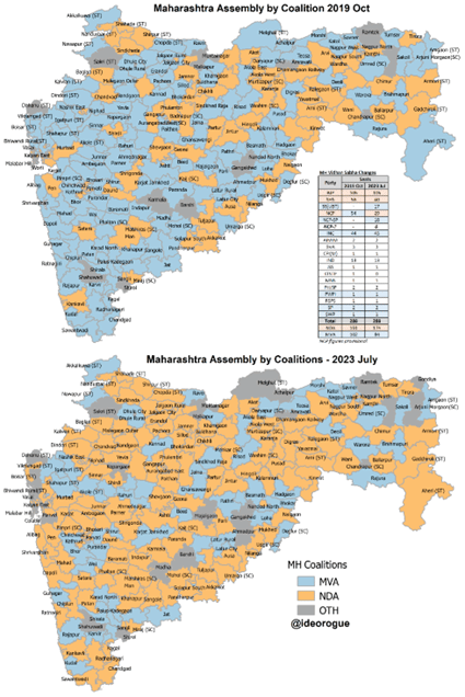 Of course, we don’t yet know how much of the NCP vote base Ajit Pawar will be able to retain, but whatever he can cobble together will do the trick in those seats where the NDA lost by small margins.