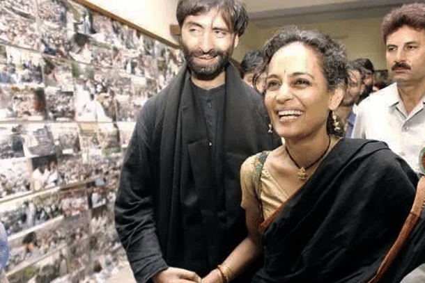 In another scene, when the protagonist of the film Krishna Pandit (played ably by Darshan Kumar) is taken to meet the terrorist Bitta in a boat house, a photograph on the wall flashes on the screen. It’s Professor Radhika Menon holding hands with Bitta. But in real life, it was actually leftist author — activist Suzanna Arundhati Roy holding hands with terrorist Yasin Mallik.