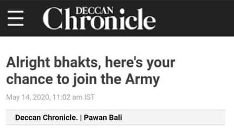 The headline by the Deccan Chronicle said, ‘Alright bhakts, here’s your chance to join the Army’.