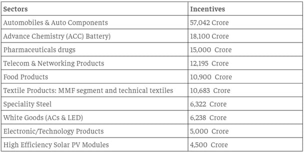 The 10 sectors along with financial incentives allotted to them are mentioned below: