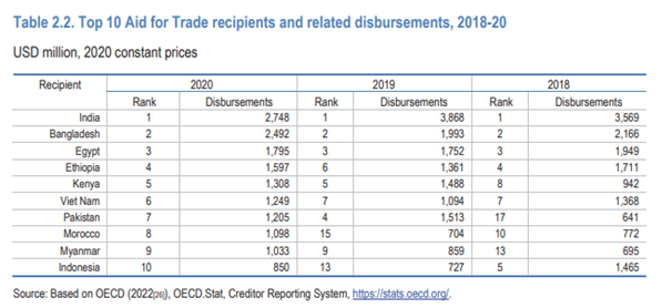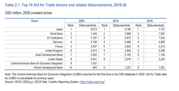 Asian Development Bank does not even work in the pure trade domain but its funding is classified as aid for trade.