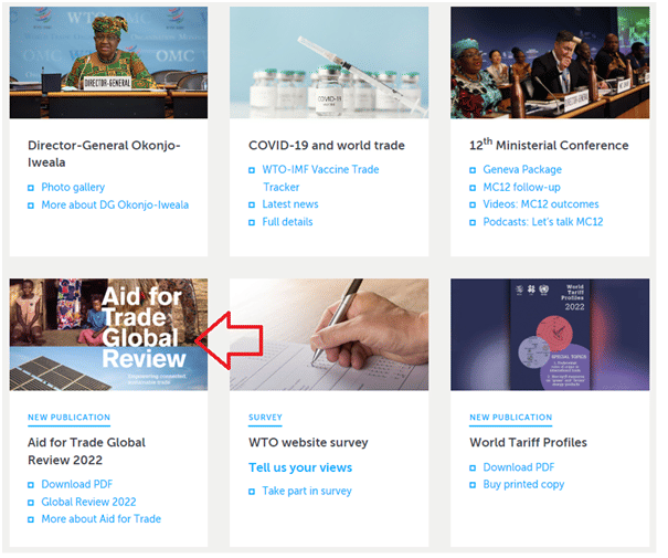 World Trade Organization (WTO) publishes an annual report called “Aid for Trade Global Review”.