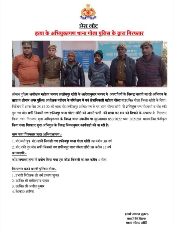 A press note shared from the police’s Twitter account said that a case was registered at Gola Police Station of Kheri in the murder (FIR number 850/2022).