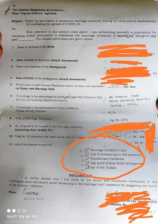 The Bride's brother subsequently took to Facebook to release documents to claim that his family had made an application to the DM for conducting the wedding at night - owing to the auspicious muhurat, and a permission was also granted.