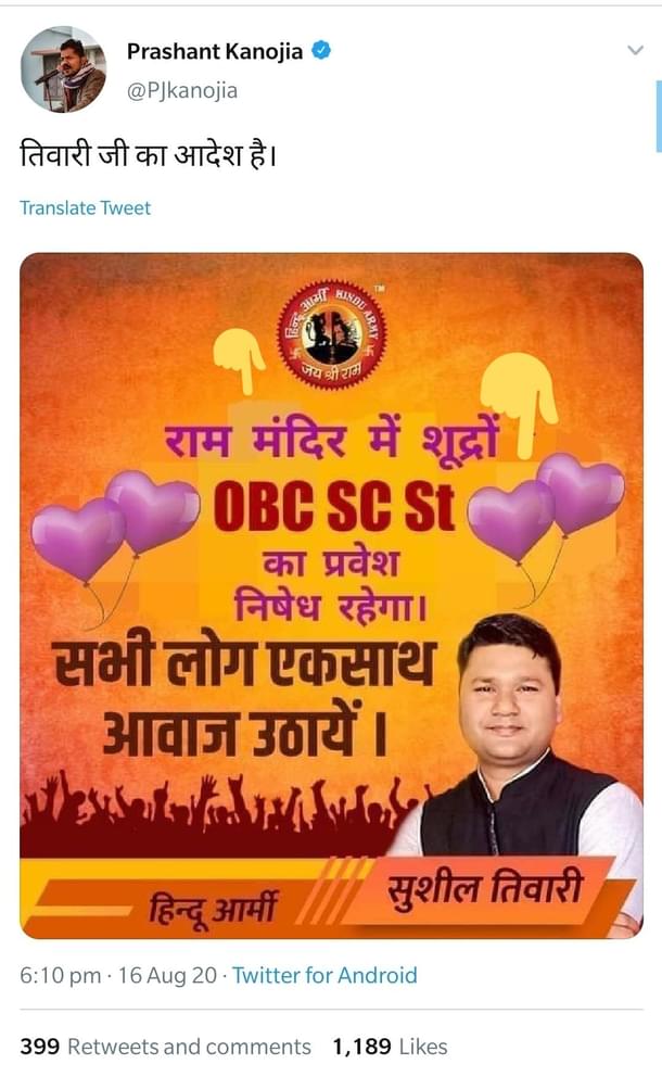 The said however was tampered with and surfaced on social media with this content (as translated): “People from OBC SC ST communities will be prohibited form entering the Ram temple”.