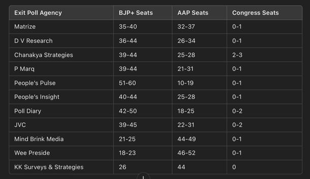 Two exit polls, Matrize and D V Research, indicated a close contest, while three agencies, including Mind Brink Media and Wee Preside, projected an AAP victory. Notably, some polls suggested that the Congress might win 1-3 seats after drawing a blank in 2020.