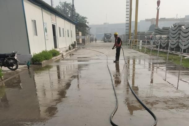 Anti-smog guns are being used frequently to control the dust and pollution caused by construction work and water is being sprinkled from water tankers at the construction site to prevent flying dust.