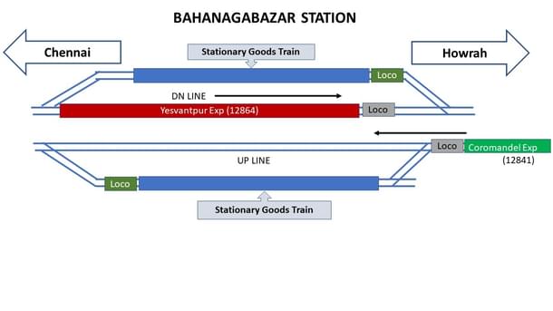 According to the Loco Pilot Association, data logger simulation suggests that Coromandel Express signalled for the main line at maximum speed. But in reality the train has entered the loop line and collided with the goods train.