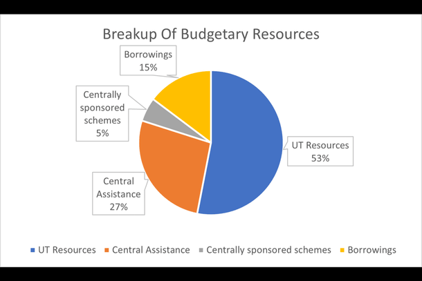 Of the Rs 11600 crore budget, the UT's own resources amount to Rs 6154.54 crore and central assistance including Disaster Relief Funds amounts to Rs 3117.77 crore. Additionally, an amount of Rs 620 crore would be available to the UT under centrally sponsored schemes.