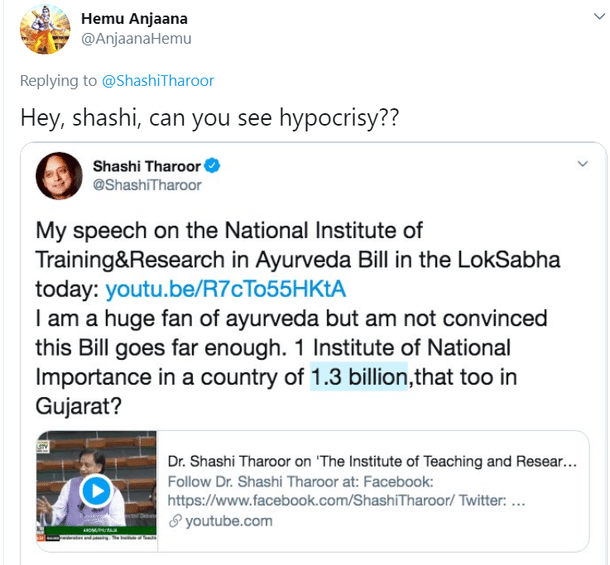 Multiple users later pointed out that Tharoor himself had used the figure of 1.3 billion in one of his tweets in the month of May this year.