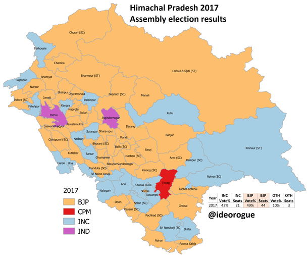 From 1993 onwards, the mandate has alternated between the Congress and the BJP, with the chief minister’s post being shared by Virbhadra Singh, and PK Dhumal.