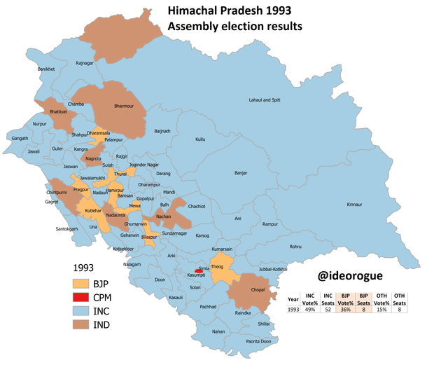 President’s Rule was imposed, and fresh assembly elections were held only in December 1993, which the Congress under Virbhadra Singh won with record numbers.