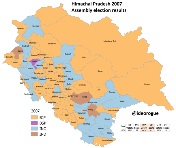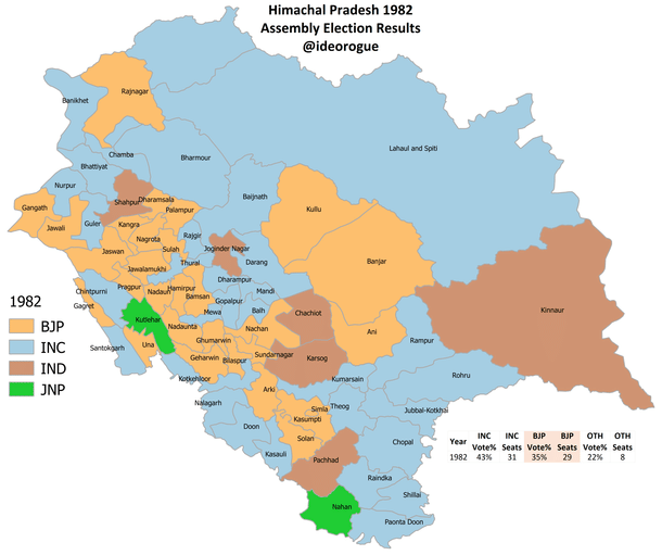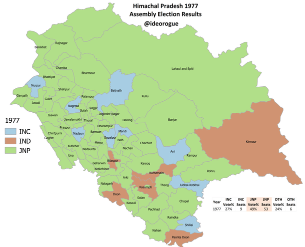 The electoral history of Himachal Pradesh since 1977 is summarised in a table below: