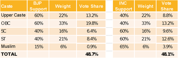 The BJP has tried to allay the fears of the SC-ST bloc by nulling the Supreme Court judgement and trying to compensate for the loss of some upper caste votes. However, OBCs and SCs, as well as upper castes and SCs, have a history of antagonism and are unlikely to vote together. With a section of upper castes unhappy with the BJP, SC-ST voters could play the role of kingmaker this time around. To return to power, the BJP has to target a minimum of 40 per cent support from the SC-ST bloc, while the number would be much higher at 60 per cent for Congress.