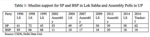 Since the days of Ram janambhoomi movement-Babri Masjid demolition, Muslims had been consistently voting SP in a big way. The recent CSDS Tracker-I data confirms the continuation of that trend (Table-1).