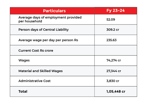 So, if the wages are increased from Rs 236 (average) to Rs 400 per day, the increase of Rs 164, assuming that in financial year 2024 (FY24) person days of the Centre’s liability and other elements of cost remain the same, it would result in an additional cost of Rs 50,709 crore, taking the total cost to Rs 1,56,157 crore.