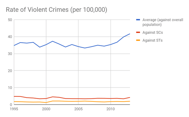 In my earlier article, we had analysed the National Crime Records Bureau (NCRB)’s 2016 statistics on crimes against Scheduled Castes (SCs) and Scheduled Tribes (STs) and seen that, if anything, it indicates that SCs and STs face far lesser violence than the average population. We had also questioned the claims made on behalf of the NCRB data that the crimes against SCs and STs had disproportionately increased.