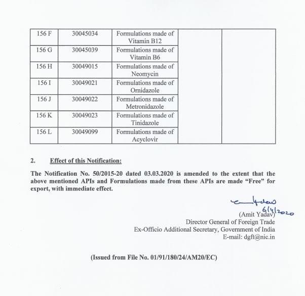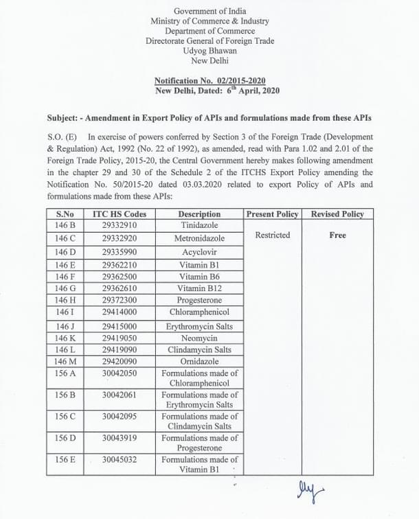 Here’s more proof (and official too). This is the notification issued by the government of India dated 6 April which amended export policy of various API (Active Pharmaceutical Ingredient).