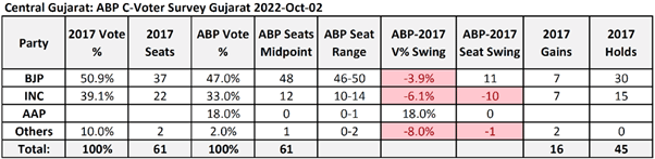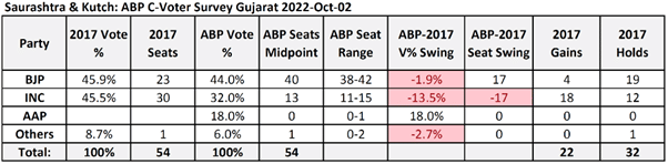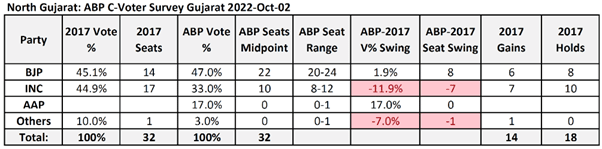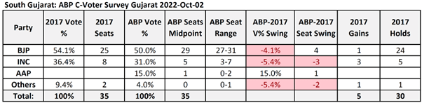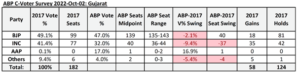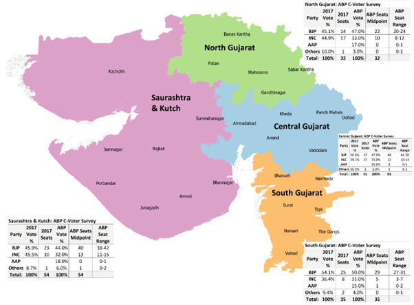 Here are the survey results along with those of the 2017 Gujarat assembly elections: