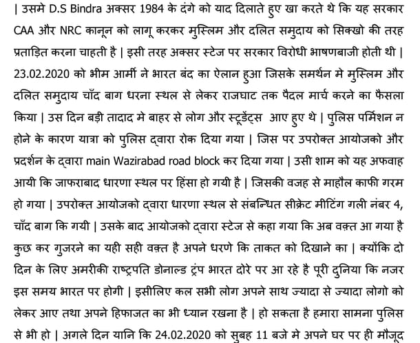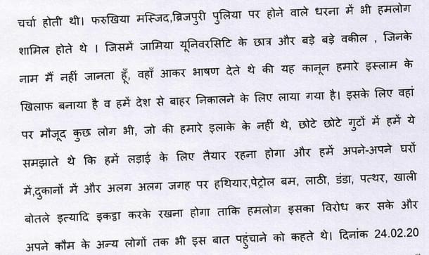 Below is the testimony of Salman, one of the main accused in multiple riot cases in Shiv Vihar area, where he tells how the speakers at the anti-CAA protest site near Farooqia masjid used to incite people.