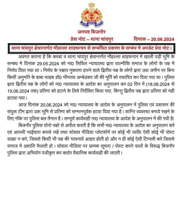 What initially appeared to be a local dispute quickly escalated into a state-wide caste issue when Dalit-Ambedkarite leaders intervened, cautioning the police against removing the statue, framing the issue as one between the Yogi Adityanath government and followers of Ambedkar.