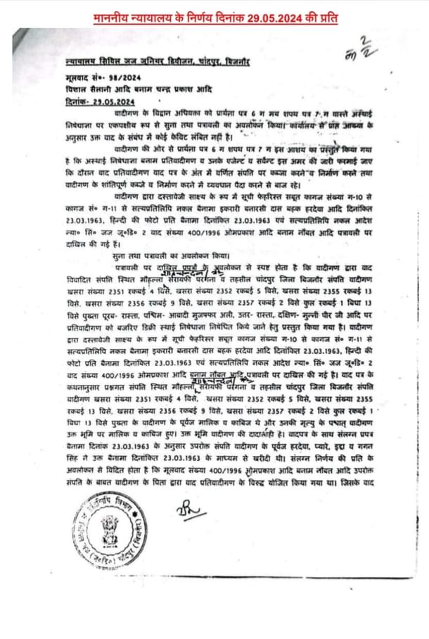 Pujari included in his complaint a copy of a court order dated 29 May, 2024, issued by a Bijnor civil judge, which confirmed his ownership of the plot. The court order shows that the dispute over ownership of the land had been going on for three decades.