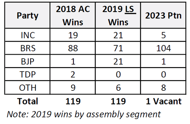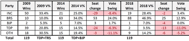 Indeed, in conclusion, the most intriguing aspect of the Telangana assembly elections will, in fact, be to see how much of the 2019 vote share the BJP retains in 2023; because, if the BJP crosses into double digits, it will lead to a number of unpredictable three-way contests.