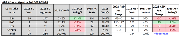 One, the C-Voter survey says that there will be a minor swing of votes from the BJP, the JD(S), and ‘Others’, to the Congress – and only to the Congress.