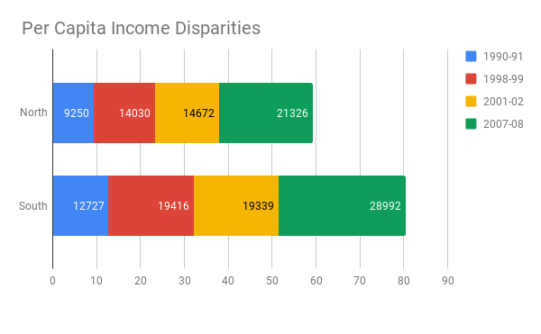Again, other fields such as education, farming, and irrigation also throw up similar regional disparities.