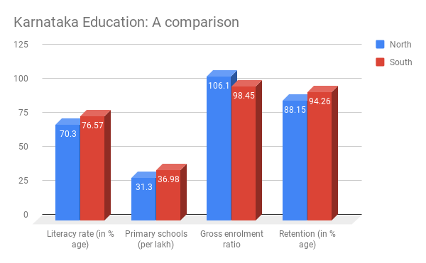 According to the Human Development Index, 96.92 per cent of Kalaburgi and 100 per cent of Yadgir district village panchayats are below state average. This is in sharp contrast with southern districts like Bengaluru Urban, Dakshina Kannada, Udupi, and Mysuru.