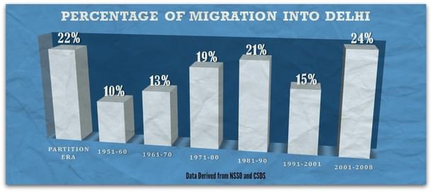 Then, in the post-partition years, many other migrants started moving into Delhi from other parts of India mainly from UP and other North Indian states in search of livelihood. Since 80’s and 90’s, after Calcutta lost its lustre, Biharis have been migrating in large numbers to Delhi – Biharis who constituted merely 19% of the migrant population in the 70’s had increased up to 33% by 1991.