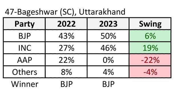 This reserved seat was won by the BJP last year in a messy three-way contest. But in the byelections, it has not just become bipolar, but much more intensely so, than is the norm in the state. The BJP has consolidated its position and the Congress has gotten back its vote from the Aam Aadmi Party (AAP).