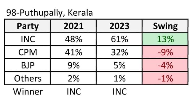 The Marxists will be rightly dispirited by this outpouring of public sympathy, particularly since their young candidate had put up a spirited contest in 2021, but it was inevitable, since Chandy Sr had represented Puthupally for over half a century, and his recent demise hit the locals hard.