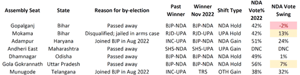 The seven assembly by-elections which were conducted in half a dozen states on 6 November offer indicators on which way the political winds might be blowing across our land.